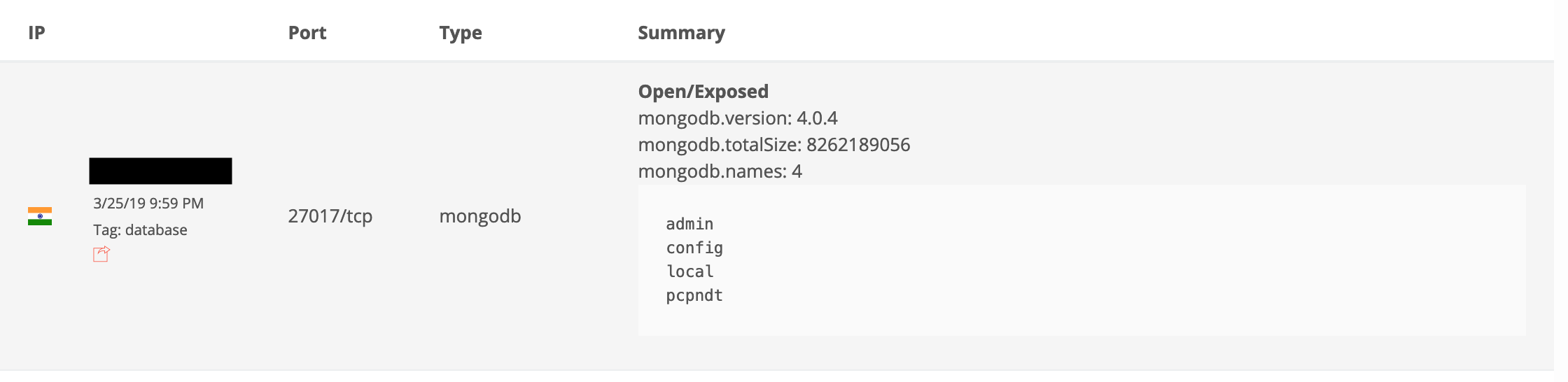 Now that the database is secured, I can disclose the details of another misconfigured MongoDB incident which I first identified on March 7th during a regular security audit of the BinaryEdge search engine stream.